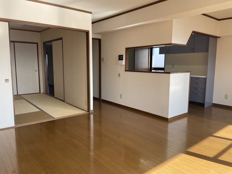 生活便利な片町エリアの4LDKマンション。8階部分で日当たり良好、明るいリビング。イオンや市役所が近く、長崎市内行きシャトルバス停まで徒歩2分の好立地です。