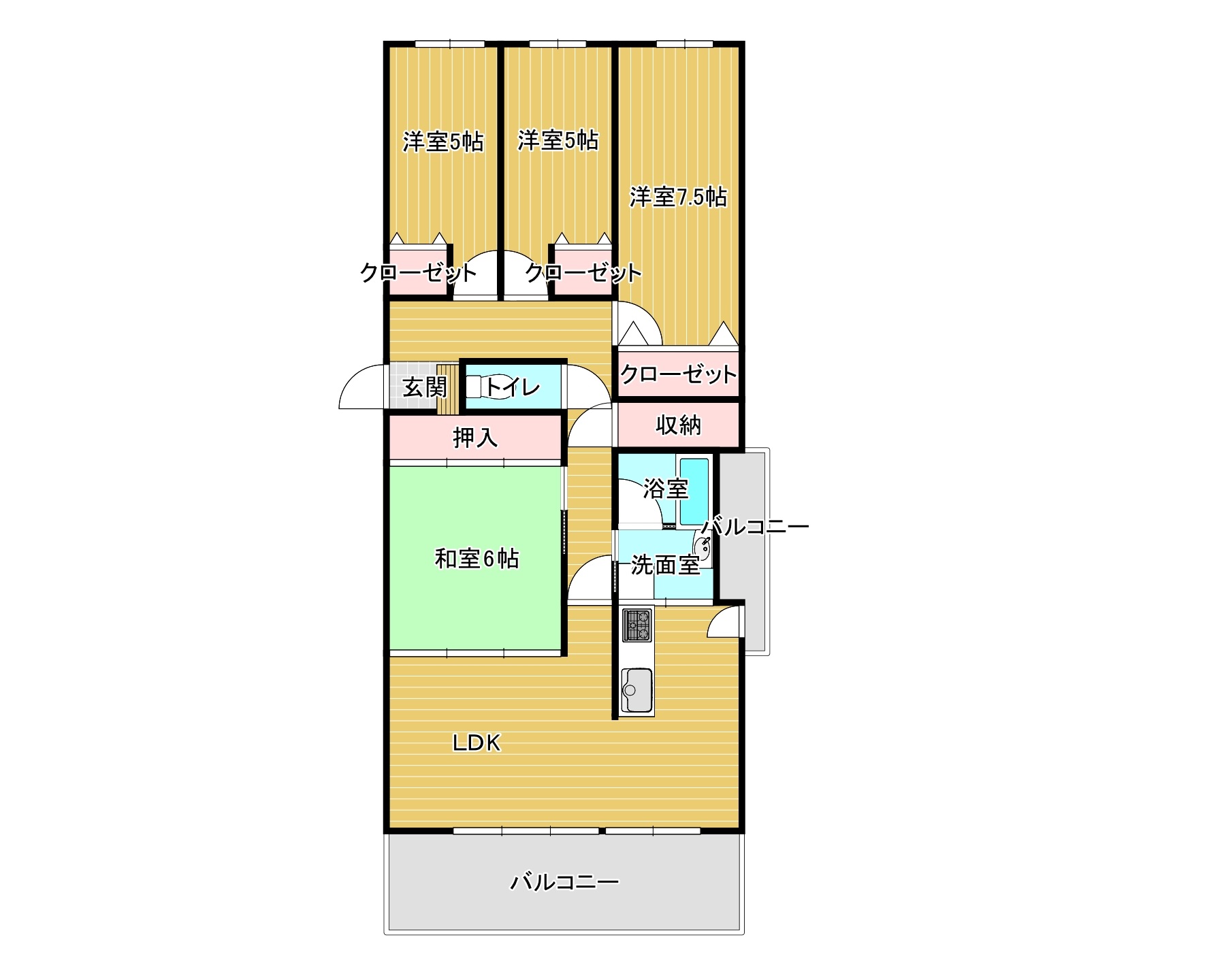 | 間取り | 4LDK(LDK13.8帖、和6畳、洋5帖、洋5帖、洋5.8帖) | ||